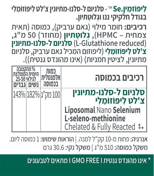 ליפוזמין SE סלניום ל-סלנו-מתיונין ליפוזמלי 60 כמוסות צמחיות קטגוריה 5
